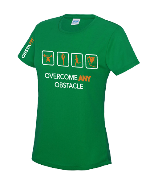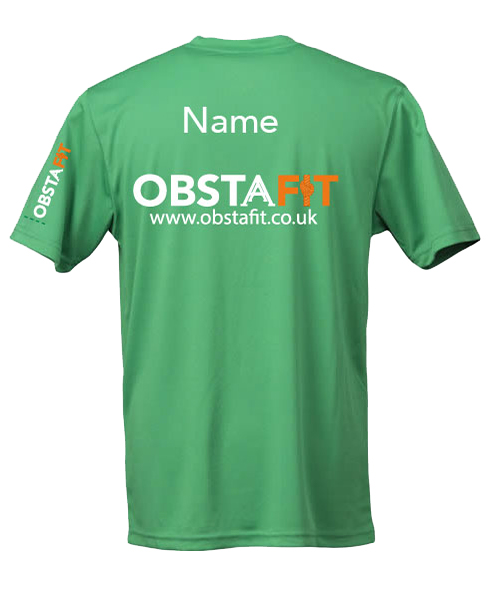 Our Obstafit Tech T-Shirts made from 100% polyester are both lightweight and moisture wicking. Perfect as a mid layer, plus you can get your name printed on the back. Awesome for races!